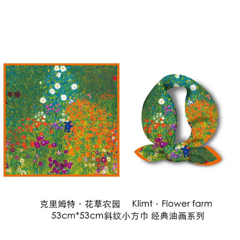 53cm thin oil painting series flower and grass garden flower and women's twill decoration small square scarf small scarf in stock silk scarf-Intent